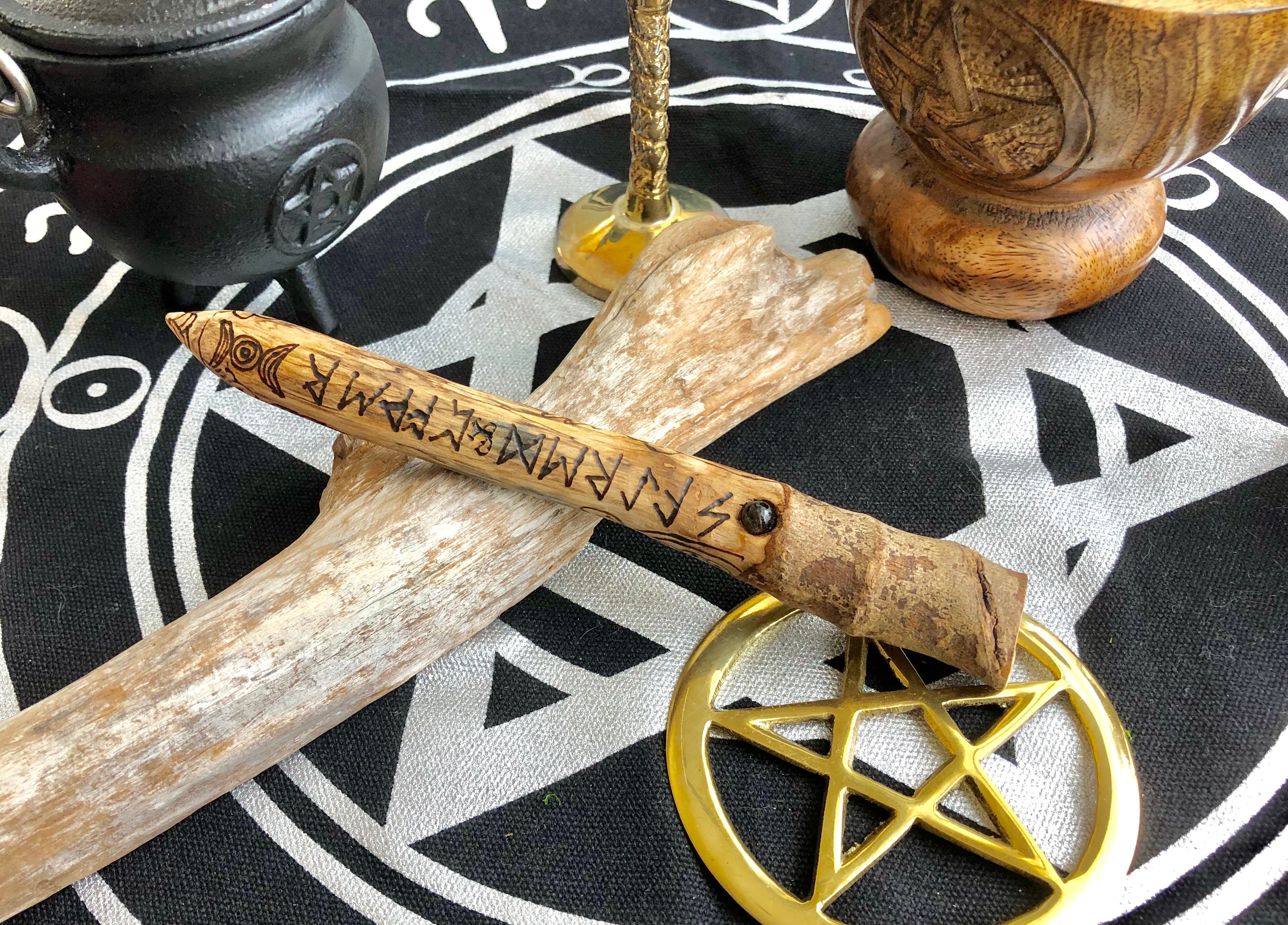 ルーン文字で「SACRED POWER」(聖なる力)ウッドバーニングで記してあります。