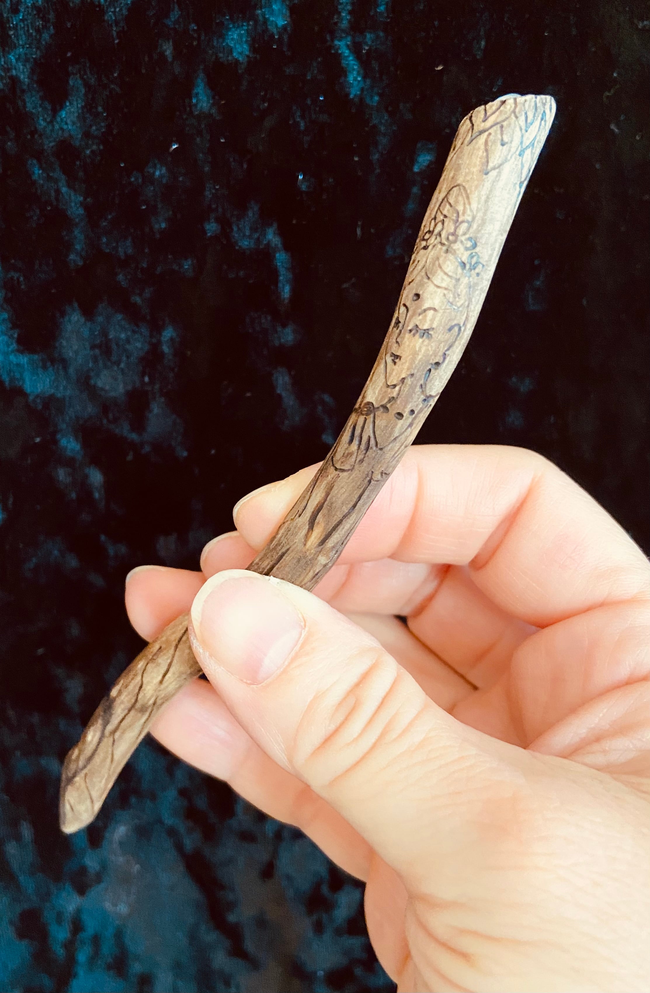 ワンドには菩薩様のデザインがウッドバーニングで